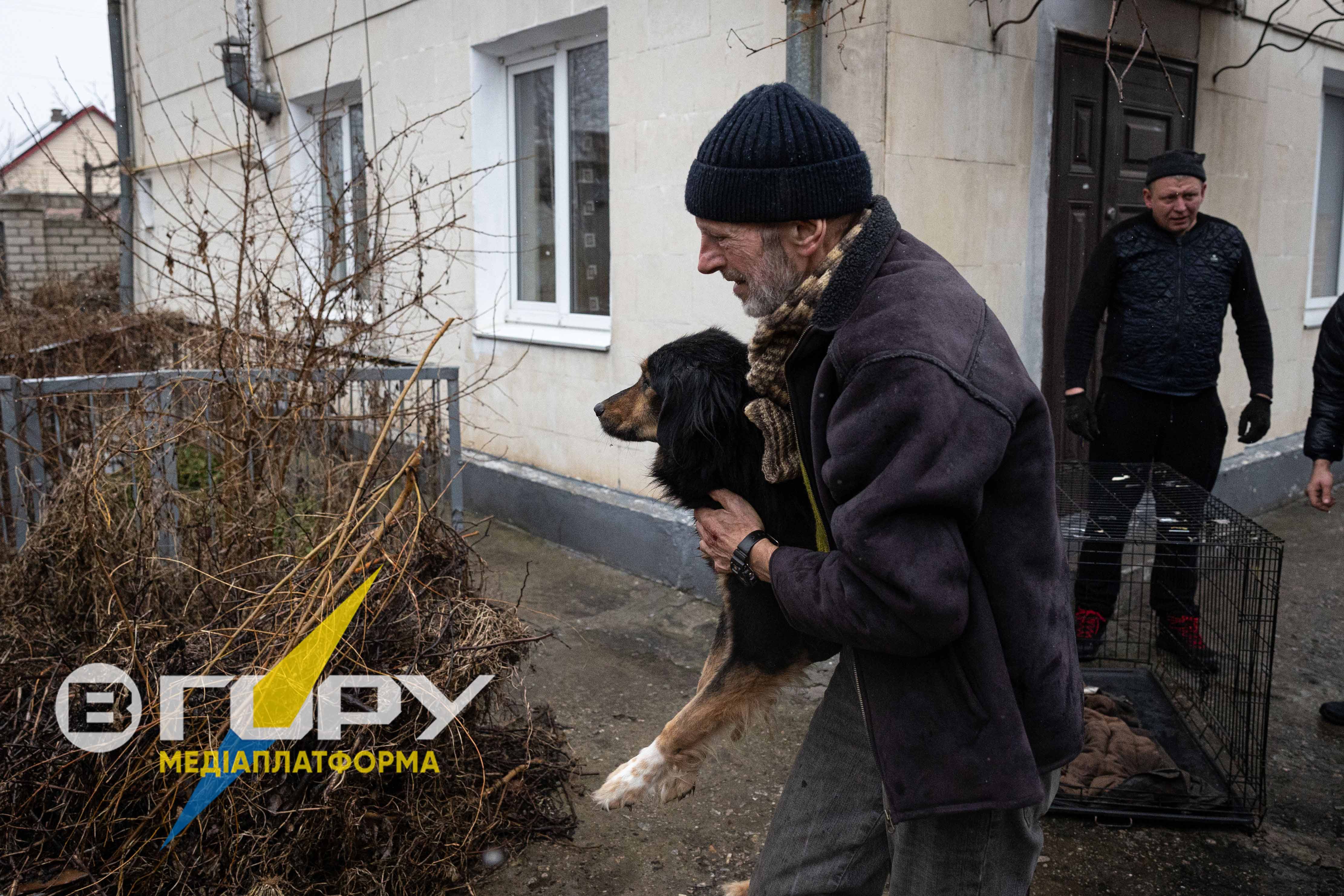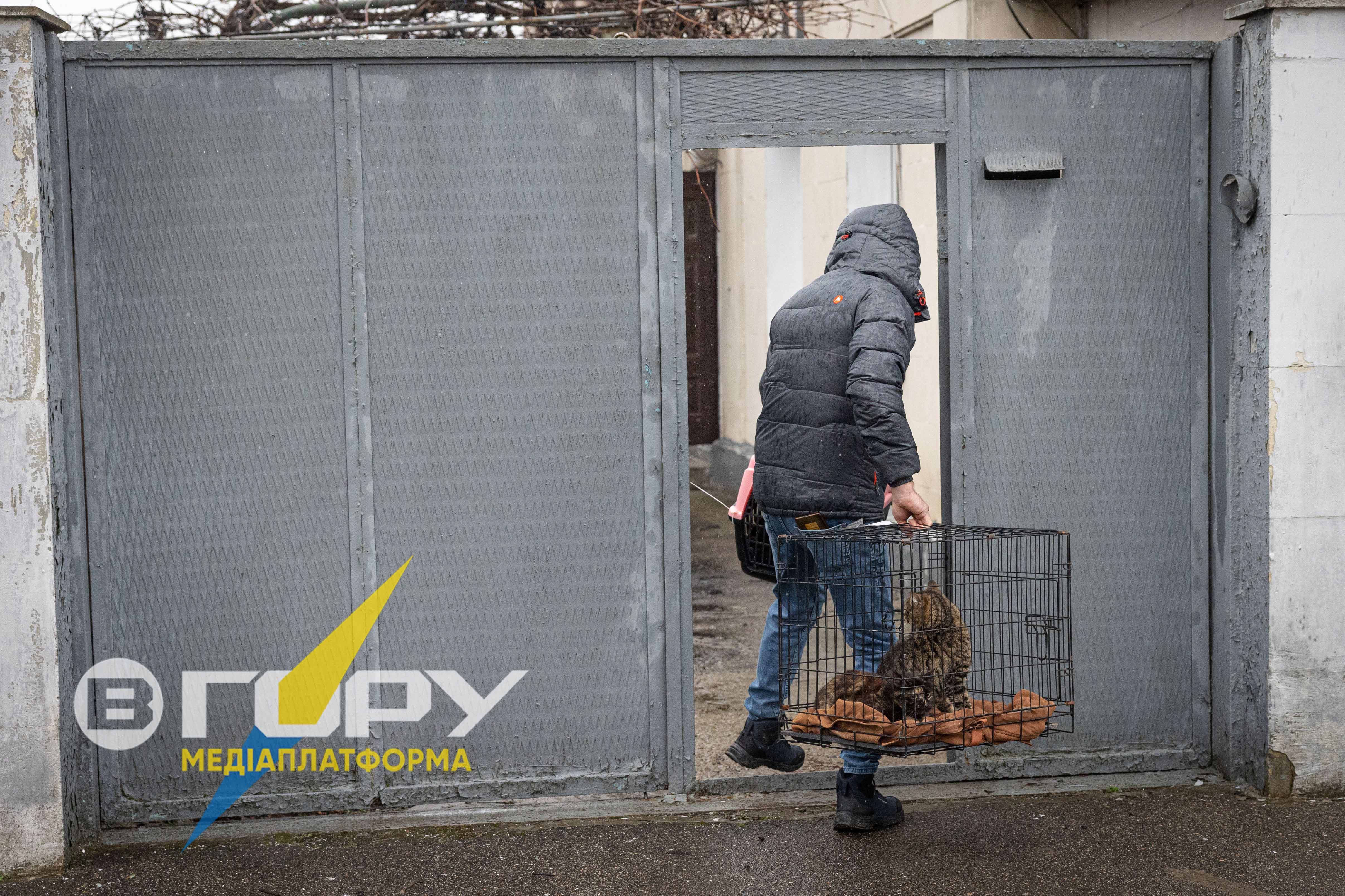 14 лютого волонтери Сергій з організації "Вільні люди" та Ростислав – "Сильні, бо вільні", а також водій Віктор евакуювали з Токарівки Херсонської області подружжя та їхніх 15 собак і 20 котів. Фотокореспондент Медіаплатформи “Вгору” Олександр Корняков був разом із волонтерами та зафіксував евакуацію тварин.Чоловіки сказали, що сьогодні пощастило, тому що на вулиці туман і російські військові з лівобережжя Херсонщини не бачили їх.
