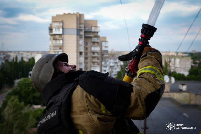 Сьогодні ввечері на номер 101 м.Херсон надійшло повідомлення про виникнення пожежі у багатоповерхівці в одному з мікрорайонів міста.Як повідомляє Головне управління ДСНС України у Херсонській області виявилось на 12,13 та 14 поверхах горіли балкони.Вогнеборці швидко приїхали за викликом та загасили пожежу не давши вогню і шансу на поширення до житлових кімнат.