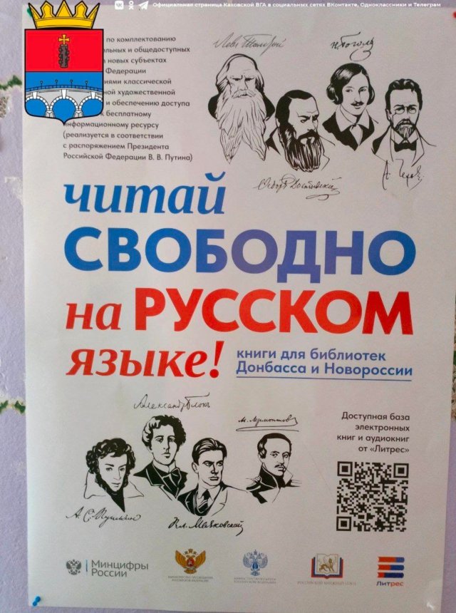 «Читай вільно російською мовою!» - таку назву має акція з забезпечення книгами бібліотек тимчасово окупованих росією регіонів України. Реалізується вона відповідно до розпорядження фюрера путіна.Що ж рашисти пропонують «вільно читати»? У бібліотеку Любимівки Каховського району вони, наприклад, доставили книжку жанни андрієвскої «От девицы до бабы. Мир русской женщины», яка, за словами самої авторки, «присвячена щасливій, і в той же час гіркій долі російської жінки».