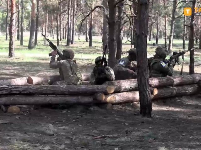 З живих сосен окупанти роблять собі бліндажі і підземні церкви, а морпіхи Північного флоту взагалі зробили собі щось на зразок дитячого майданчика, на якому, повідомив окупаційний телеканал «Таврія», «відпрацьовують дії з форсування Дніпра». «Відпрацювання наближені до реальності, для них використовують макет човна з колод», - повідомили пропагандисти. Хоча так погратись могли б і вдома. Тоді б наші сосни були цілішими.