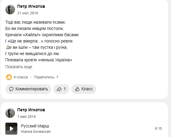 У майора Ігнатова була сторінка в забороненій в Україні російській соцмережі «Однокласники» там є, як мінімум два дописи, які вказували на його проросійські погляди. Дивно, що на це не звертало увагу керівництва Херсонської поліції.
