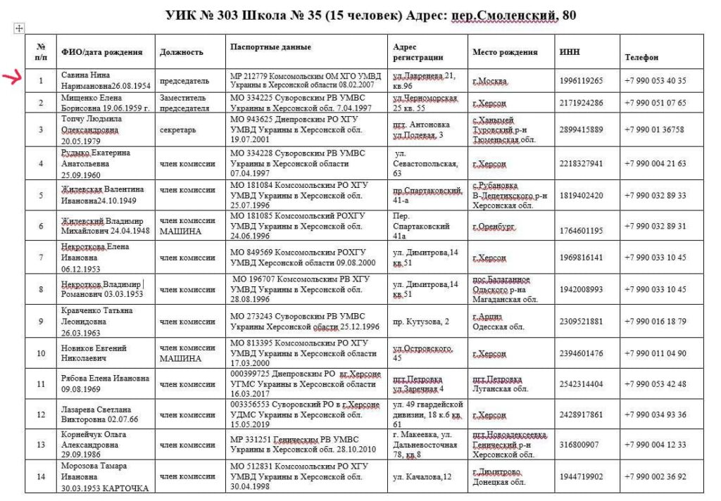 Також Савіна очолила«виборчу комісію №303» під час фейкового референдуму росіян у Херсоні.