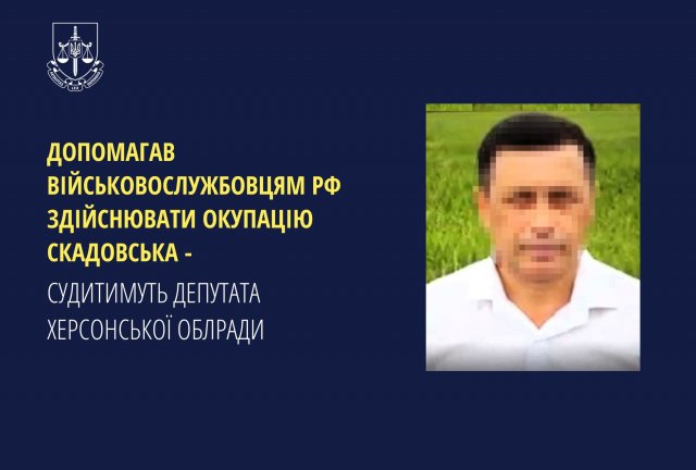За даними слідства, у березні 2022 року депутат супроводжував у центр Скадовська Херсонської області колону військової техніки з російськими військовими, забезпечуючи орієнтування окупантів на місцевості.