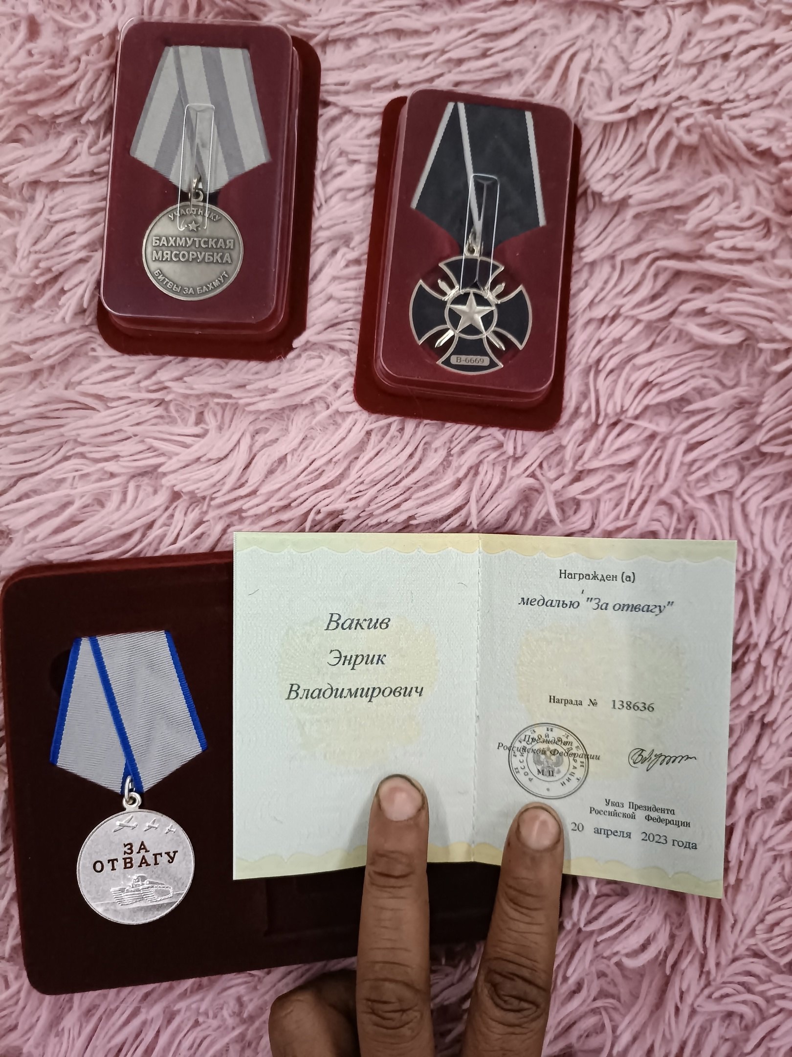 Нагороди бойовика «ДНР» і ПВК «Вагнер» Енріка Ваківа. Фото з соцмереж