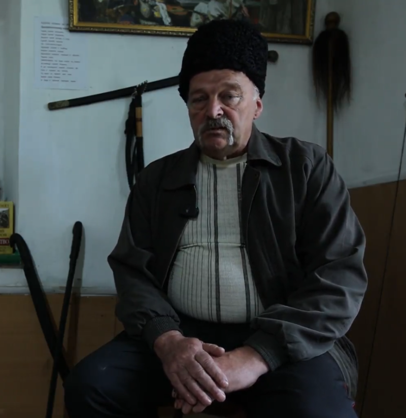Чулаківський “атаман” Ігор Чернишов. Фото: російські ЗМІ.“Зараз казакі (кубанські, терські, кримські) воюють за звільнення нашої держави від укронацистів. Коли ми почали носити тут папахи, на нас люди місцеві дивились, ніби ми несповна розуму. Чесно вам кажу! Адже цю владу, російську владу, багато хто не розумів. І взагалі вважали, що ми тут нічим не займаємось”, – зазначає так званий “атаман”.