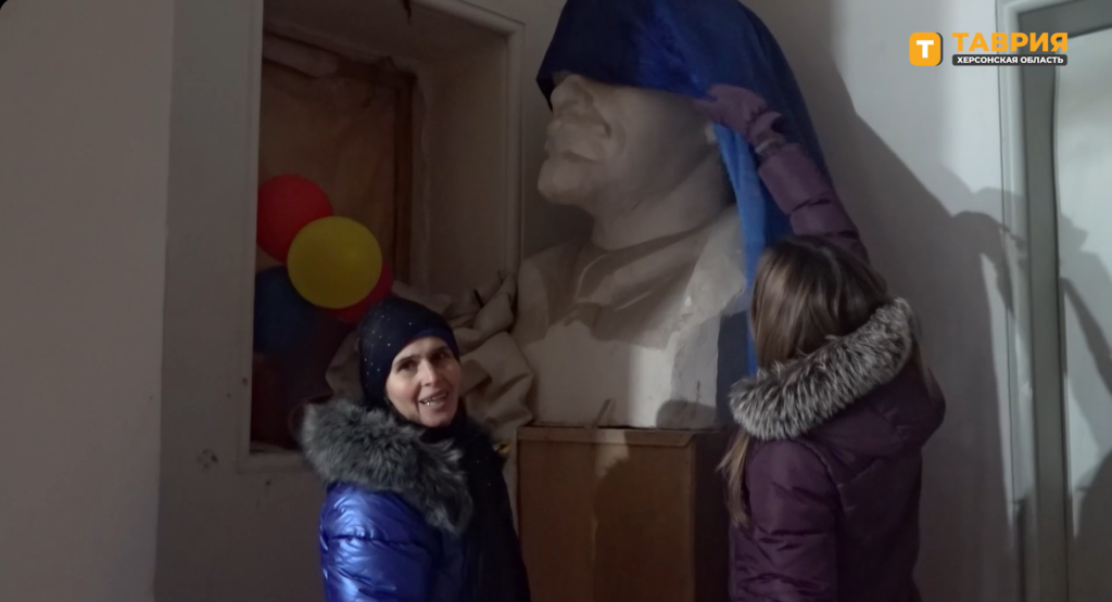 Чи не найбільшу увагу в сюжеті окупанти приділили бюсту Лєніна, який зберігався в одному з приміщень будинку культури.
