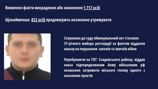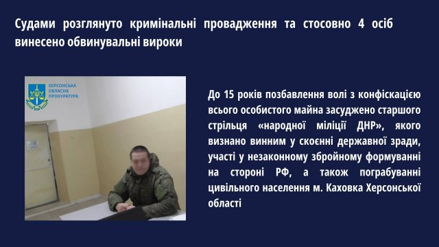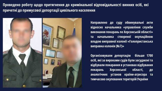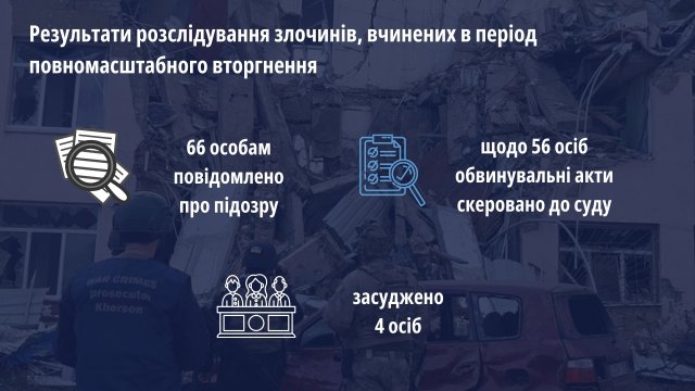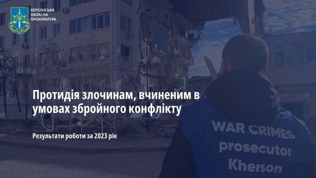 У 2023 році правоохоронними органами Херсонської області зареєстровано 12 тисяч кримінальних правопорушень проти миру, безпеки людства та міжнародного порядку.Про це повідомила Херсонська обласна прокуратура.З початку повномасштабного вторгнення ця цифра сягає майже 21 тисячі.Через російську агресію на території Херсонської області загинуло 1 301 цивільна особа.Всього за результатами розслідування злочинів проти миру, безпеки людства та міжнародного порядку у 2023 році повідомлено про підозру 66 особам, щодо 56 осіб обвинувальні акти скеровано до суду.