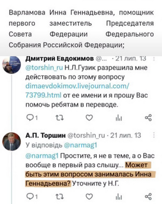 Також Громадське з’ясувало, що Інна Варламова працювала у верхній палаті російського парламенту та може бути причетна до ФСБ.