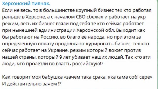 Адміністратори і читачі пропагандистських телеграм – каналів радять звертатися до Путіна і вимагають щоб призначали на посади не місцевих.