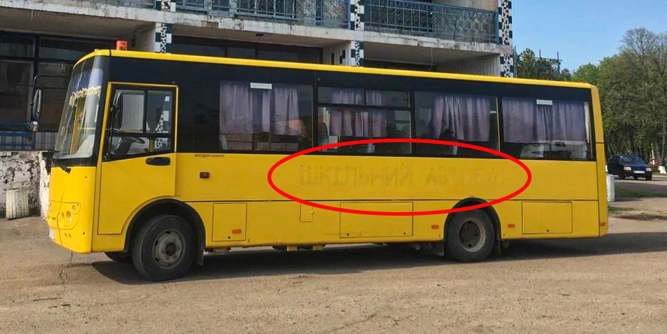 На відео можна побачити на кузові автобусу сліди від здертого напису «Шкільний автобус». Також на знятому пропагандистами відео є український державний номер транспортного засобу – BT1005CP.
