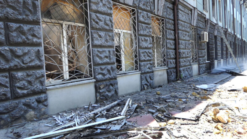 В епіцентрі ударів пошкоджено гімназію та об’єкти інфраструктури, адміністративну будівлю, два багатоповерхові будинки і три автомобілі.