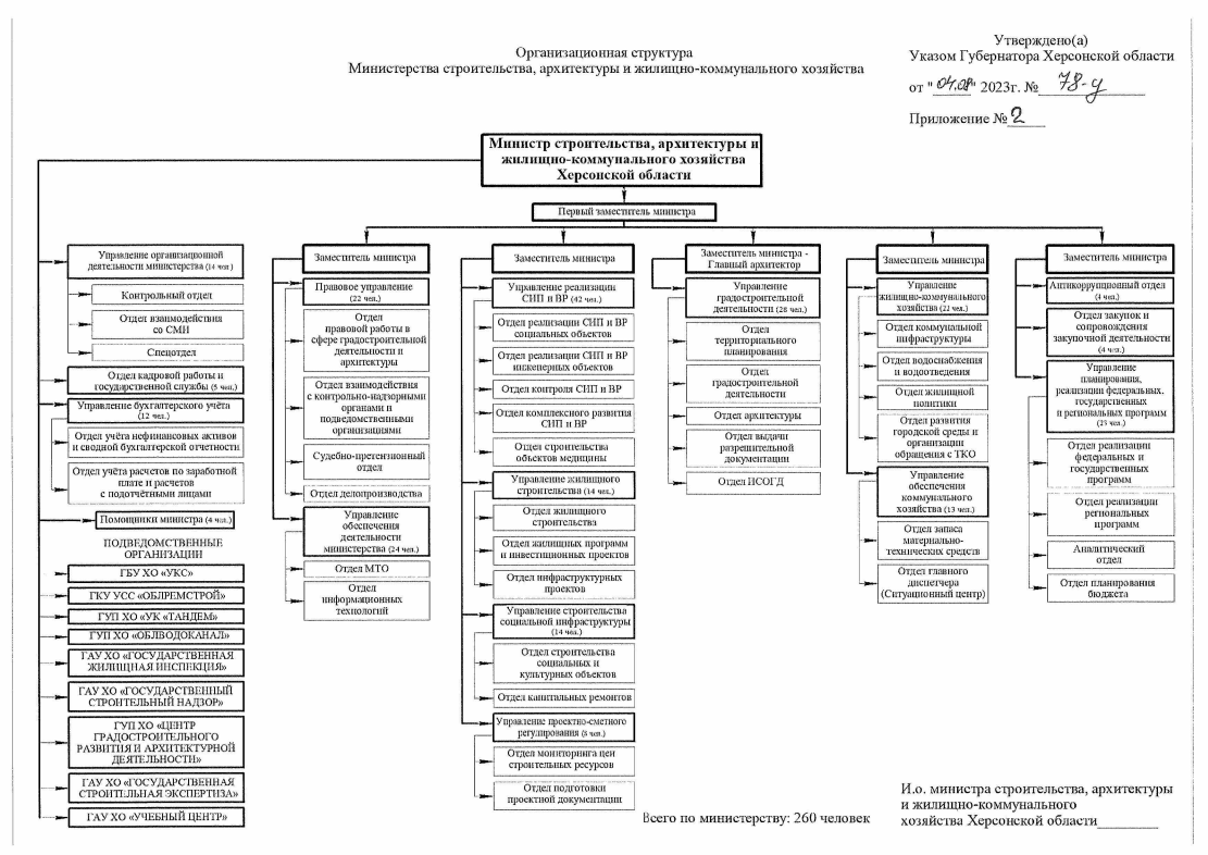 Структура «міністерства» з указу гауляйтера Херсонщини Володимира Сальдо.