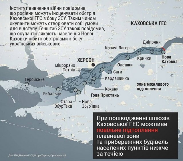 Зауважимо: вночі вівторка російські пропагандистські пабліки масово почали звинувачувати українську армію у підриві ГЕС. За офіційними даними, Сили оборони України жодних військових операцій у цьому квадраті не проводили.