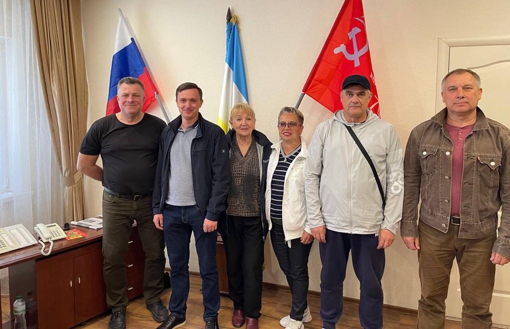 Колаборантка Олена Чепінога (третя праворуч). Фото з окупаційних ЗМІ