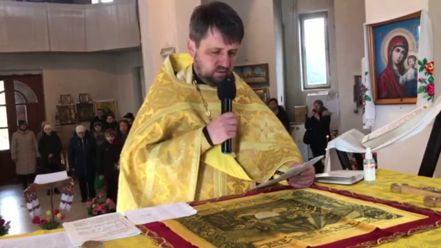 Початок березня 2022 року, отець Сергій веде богослужіння. Стоп-кадр з відео, фейсбук Сергія Чудиновича