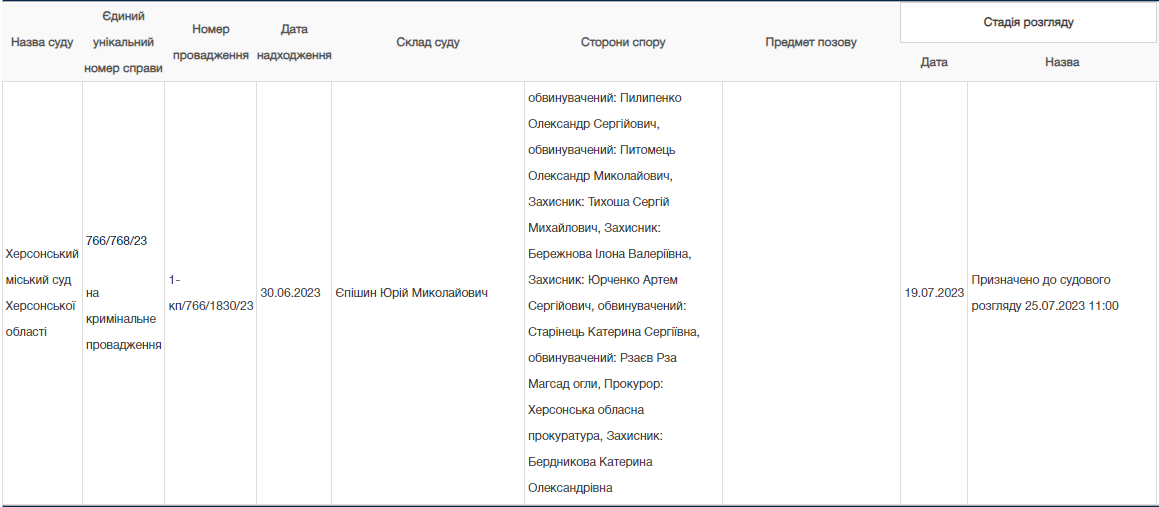 Херсонський міський суд почав розглядати кримінальну справу щодо п’ятьох осіб, які при окупантах працювали у підприємстві “Центральний ринок”. Їх звинувачують у колабораційної діяльності та пособництві державі-агресору. Фігурантам справи загрожує до 12 років позбавлення волі з конфіскацією майна.Медіаплатформа “Вгору” підготувала деякі подробиці про колаборантів.На лаві підсудних мали сидіти колишні: директор Олександр Питомець, заступник директора Олександр Пилипенко, завідувач господарством Рзаєв Рза Магсад огли, головна бухгалтерка Катерина Старінець та контролер Володимир Берсан.