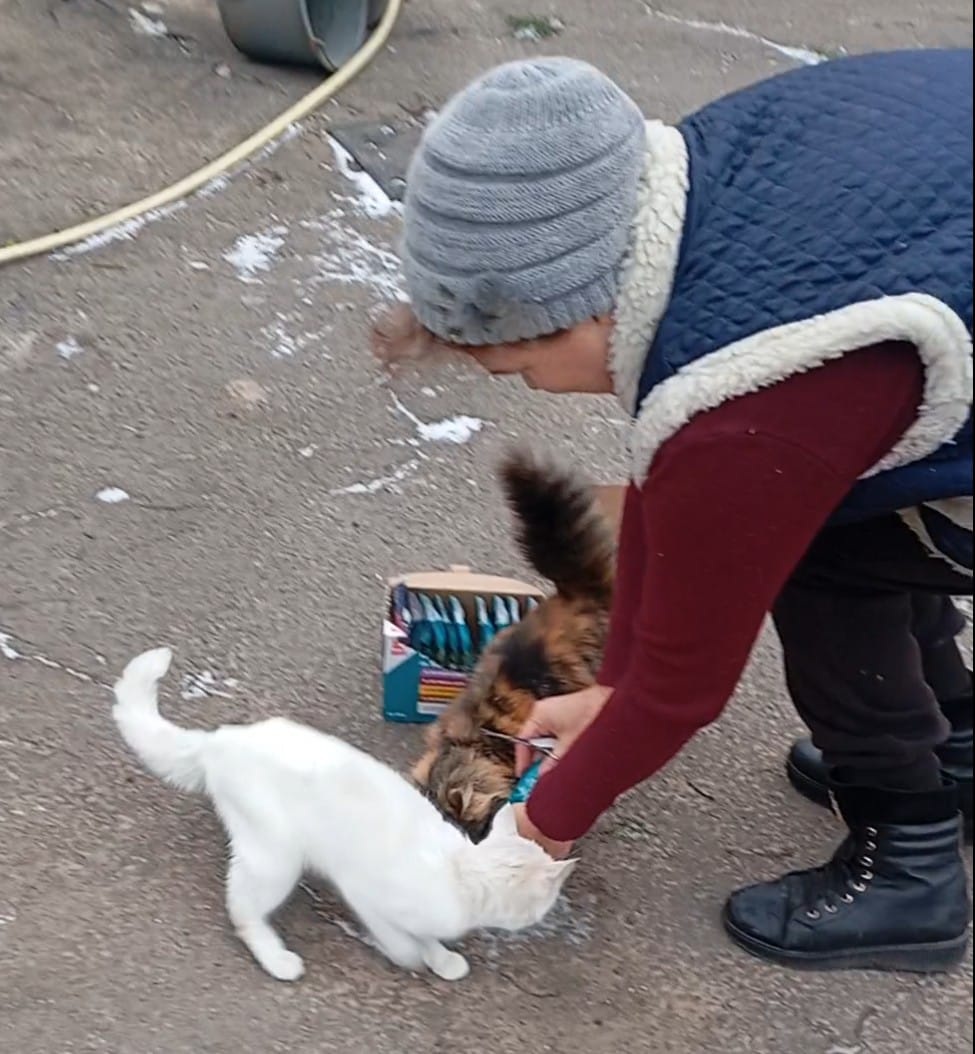 Годування тварин, залишених господарями, Фото Тетяни Ахтеменко
