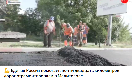 Ну і, звичайно, куди ж без доріг? В окупованому Мелітополі окупанти заявили, що відремонтували 20 кілометрів асфальтового покриття, у тому числі, завершують ремонт на проспекті Богдана Хмельницького. Асфальтове покриття на проспекті до повномасштабного вторгнення вже було капітально відремонтовано у кілька етапів – з 2017 по 2021 рік. На ці роботи було виділено більше 120 мільйонів гривень загалом.Місцеві жителі навіть жартували, що у комунальників Мелітополя є гарна традиція – щороку перекладати асфальт на проспекті Богдана Хмельницького. Схоже, що росіяни просто повторно відкриють асфальт, який було покладено ще за України.