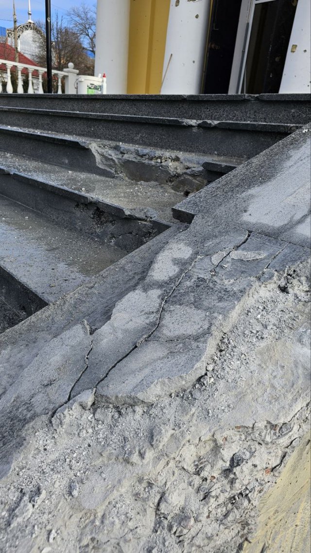 Так нині виглядає собор у центральній частині Херсона. Учора його обстріляли російські війська.Про це повідомив Олександр Прокудін у Facebook.Внаслідок ударів у релігійній споруді пошкоджено фасад, вікна, а також вхідні двері. На щастя, минулося без потерпілих.