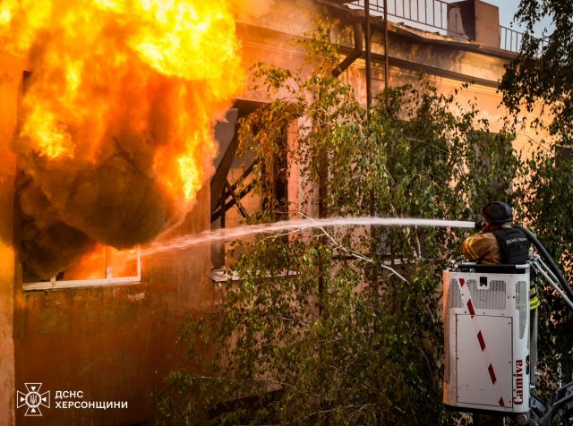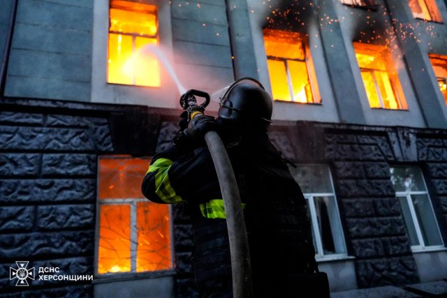 Рятувальники Херсона потрапили під повторний обстріл: вночі армія рф масовано обстріляла центральну частину міста.Про це повідомляє Головне управління ДСНС України у Херсонській області.Пошкоджень зазнали житлові будинки, навчальний заклад, медична установа та адмінбудівля.Виникло декілька пожеж Рятувальники, що приїхали ліквідувати загорання, потрапили під повторний обстріл. На щастя, ніхто не постраждав.