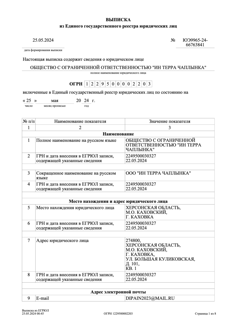 У реєстраційних документах на ТОВ «Ин Терра Чаплынка» вказано, що Сергій Дроздік є громадянином РФ. Тоді як у даних по ТОВ «Диамант» він зазначений ще громадянином України.