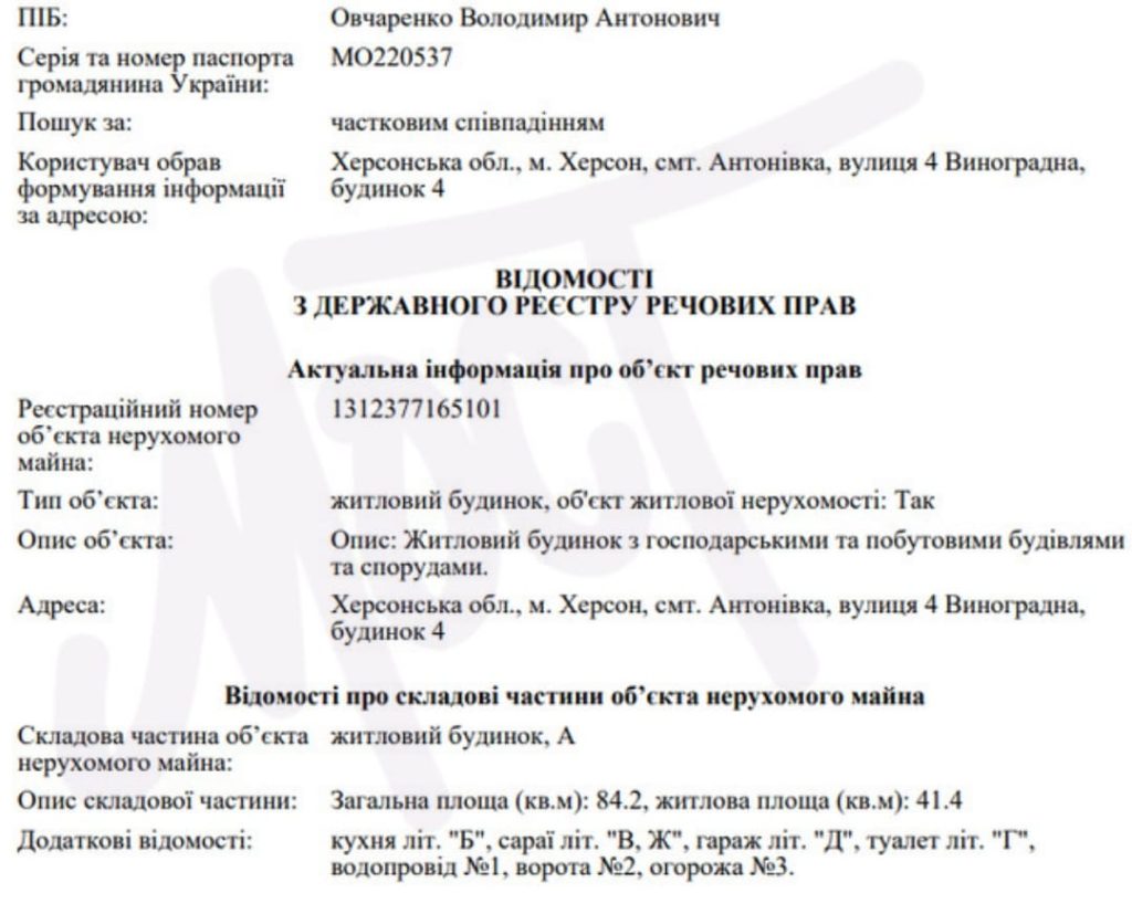 Також площа будинку у ньому співпала з площею будинку Володимира Овчаренка, яка зазначена у Державному реєстрі речових прав на нерухоме майно.