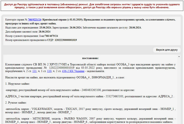 Суд арештував майно херсонця Віталія Казакевича, який публікував проросійські відео.Про це свідчить ухвала Херсонського міського суду з реєстру.Арештовані квартира і два автомобілі.За інформацією слідства, Казакевич у квітні 2022 року публікував відео з тезами про підтримку нападу Росії на Україну, виправдовування окупації територій України і закликами до участі в російському референдумі.