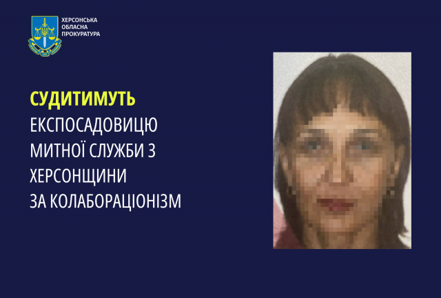 За процесуального керівництва Херсонської обласної прокуратури скеровано до суду обвинувальний акт стосовно колишньої начальниці управління митної служби за фактом колабораційної діяльності (ч. 7 ст. 111-1 КК України). Про це повідомила пресслужба Херсонської обласної прокуратури.Слідством встановлено, що обвинувачена у серпні 2022 року зайняла посаду так званого «начальника аналитического отдела» в окупаційній «налоговой службе Херсонской области».