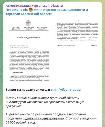 Тому одразу після скасування сухого закону магазини в окупованих населених пунктах буквально завалили пивними пляшками. Про це «Гривні» розповіла жителька невеликого села в Каховському районі пані Людмила (ім’я змінене з міркувань безпеки).«Буквально наступного дня в наше село заїхала вантажівка, повна пива. Тільки в магазині продавців одразу попередили, що цим, ну, «заробітчанам», алкоголь продавати не можна («заробітчанами» пані Людмила в телефонній розмові називає російських військових, – ред.). У перші ж дні біля магазину можна було побачити «сині» чоловічі тіла – мабуть, на радощах перебрали», – розповіла нам жінка.