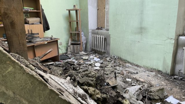 "Все каміння посипалось на дорогу, на проїжджу частину і на пішохідну дорогу. І ті що проходили пішоходи — ті були поранені. Добре, що під час прильоту у нас тут уже нікого не було, ми не затримувалися. Про все дізналися з телефонного дзвінка начальниці нашого управління", — розповіла директорка.