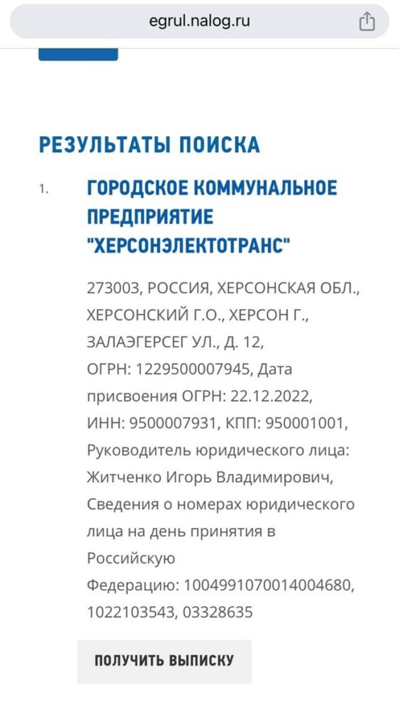 Про те, що Житченко зареєстрували як директора російського двійника «Херсонелектротранс», стало відомо наприкінці грудня 2022 року з даних російського реєстру.