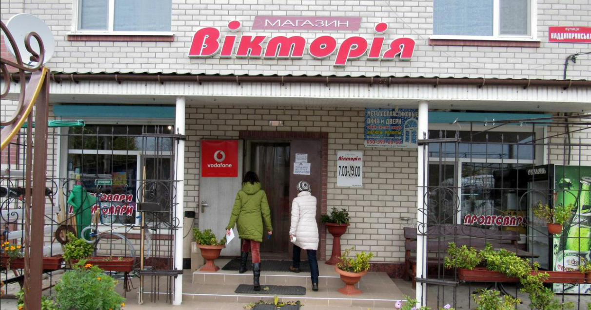 На світлинах: магазин “Вікторія” в Днфпрянах. Довоєнні фото із Wikimapia.