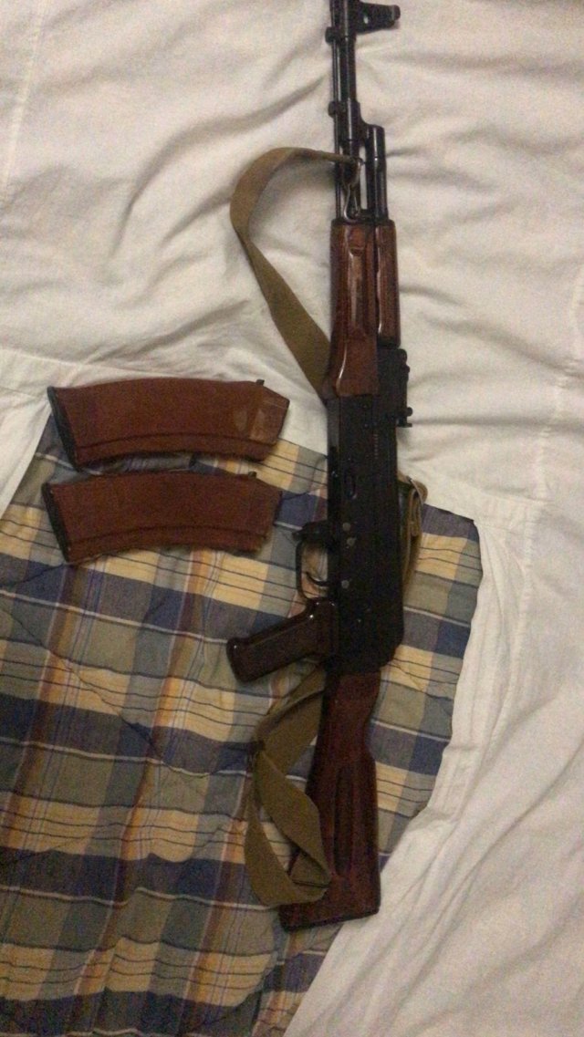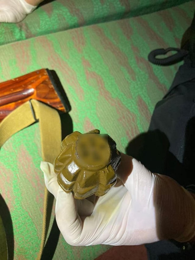 Як розповів заступник начальника слідчого управління поліції Херсонщини Чермен Тускаєв, зловмисника затримали біля його будинку. Поліцейські прийняли рішення про невідкладне проведення обшуку за місцем проживання підозрюваного. У домоволодінні виявили та вилучили автомат Калашникова з двома магазинами, корпус гранати та запал УЗРГМ, 17 пляшок із рідиною із запахом горючої суміші.
