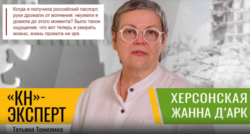 Окупувавши частину Херсонської області, росіяни одразу ж почали шукати місцевих жителів, які погодились би з ними співпрацювати. Здебільшого завербувати вдалось відверто маргінальних особистостей: міських божевільних, проросійських активістів, безробітних та політичних трупів. Колаборантка Тетяна Томіліна ж об’єднала в собі усі ці якості. Це, втім, не завадило їй стати головою так званої “Херсонської думи” – фейкового парламенту на лівобережжі Херсонщини.