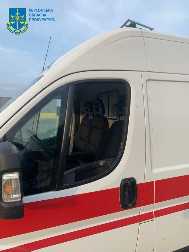 За процесуального керівництва органів прокуратури Херсонської області за фактами порушення законів та звичаїв війни (ч. 1, 2 ст. 438 КК України).За даними слідства, вранці 27 липня у Бериславі російські військові дроном атакували автомобіль екстреної швидкої допомоги.Поранення мʼяких тканин отримав водій. У стані середньої тяжкості його доставили у лікарню.