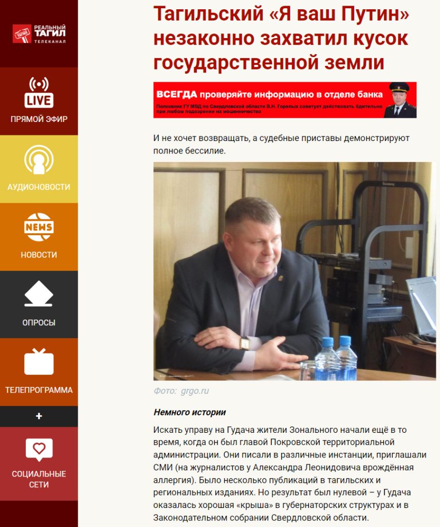 Заступник командира «добровольчого батальйону імені Маргелова», який росіяни хочуть створити на окупованій частині Херсонської області, – відомий на Уралі чиновник-корупціонер.Олександр Гудач протягом останніх п’яти років працював першим заступником голови адміністрації Горноуральського міського округу, прославився колосальними корупційними правопорушеннями, які йому сходили з рук. А також – хамським ставленням до людей, зокрема, фразою «Нема чого писати президенту, все одно все повернеться до мене – я для вас Путін», сказаною під час одного із спілкувань з мешканцями.