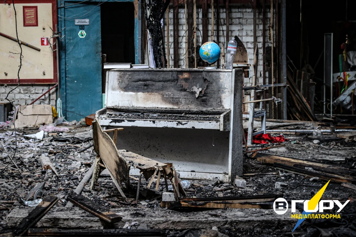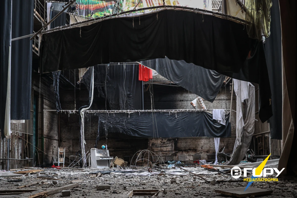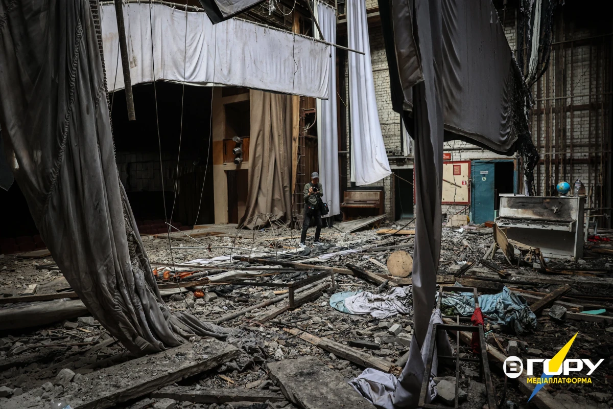 Окупаційні війська скинули керовані авіабомби на Дніпровський район Херсона 25 вересня. Унаслідок цього зазнав пошкодження заклад культури. Кореспонденти “Вгору” зробили світлини наслідків.Через атаку російських військових в закладі виникла пожежа. Всі фото Олександра Корнякова, "Вгору"