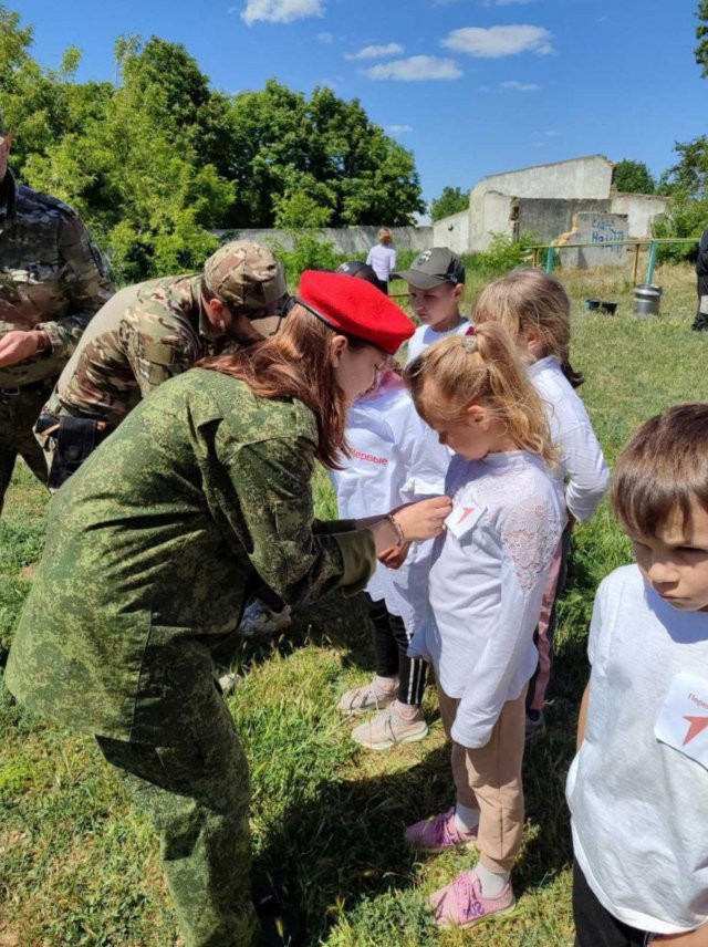 Те ж саме відбулось в окупаційній Рубанівській школі Великолепетиського «муніципального округу». «Юнармія», нагадаємо, це «патріотична» мілітарна організація, де школярів вчать користуватись зброєю та любити «царя і отечество».
