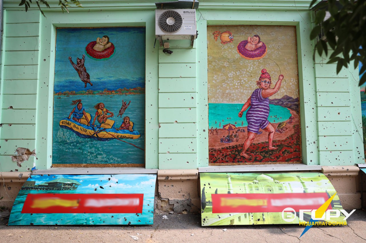 У Херсоні, у закритих плитами ОСБ вікнах та вітринах, з кінця липня почали з’являтися картини на різну тематику. І роботи, присвячені захисникам України, і дню звільнення Херсона й навіть намальовані дитиною гроші. Ці вуличні виставки розміщують у межах проєкту “На плаву”, який ініціювала громадська організація “Центр культурного розвитку "Тотем".Створено вже вісім таких вуличних галерей.