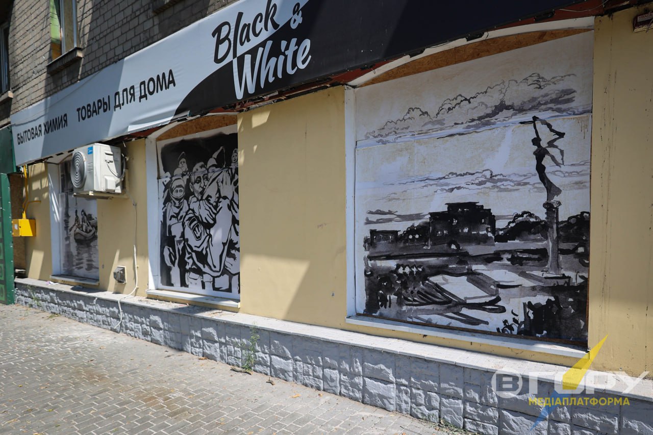 Жінка розповідає, що ідея створити такі вуличні галереї виникла, коли на фотографіях із міста побачили вікна й вітрини, забиті фанерами ОСБ.