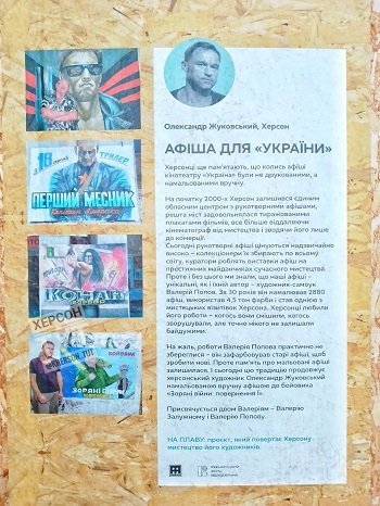 Херсонські художники підтримують городян у вірі в ЗСУ та перемозі України. Так, відомий в Херсоні Олександр Жуковський порадував містян новою афішею до майбутнього релізу кіносаги Зоряні війни.Всі херсонці пам'ятають, що колись афіші з анонсами фільмів для кінотеатру Україна були саме такими - рукотворними. Їхній автор - Валерій Попов.