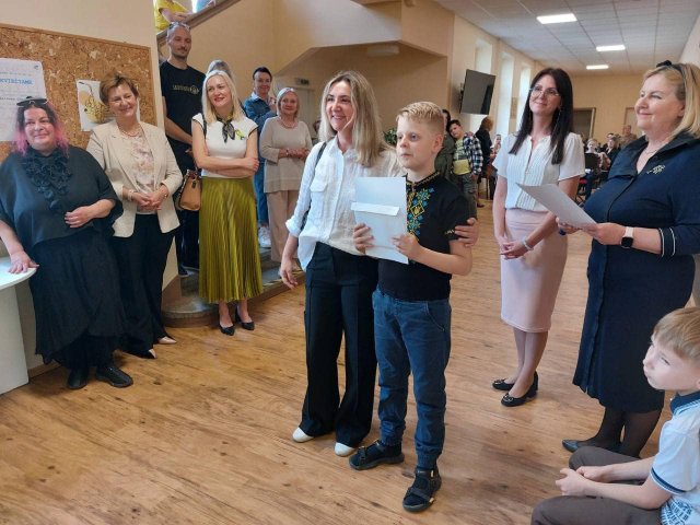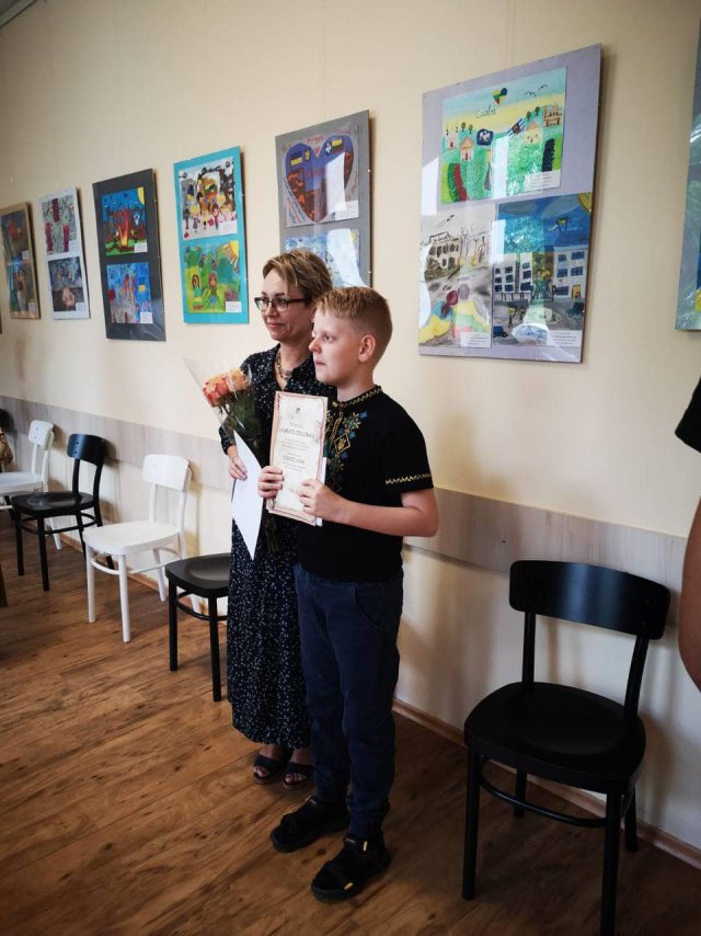 Всі конкурсанти отримали дипломи і подарунки від керівництва школи, гостей заходу - представників Сейму Литовської Республіки та волонтерів - Мілди Гоштаутайте з ГО "Memorabilis" та Романа Бережного з благодійної організації EU4Kherson. Гостей під час відкриття виставки привітав струнний оркестр під керівництвом Д. Рімкуте.