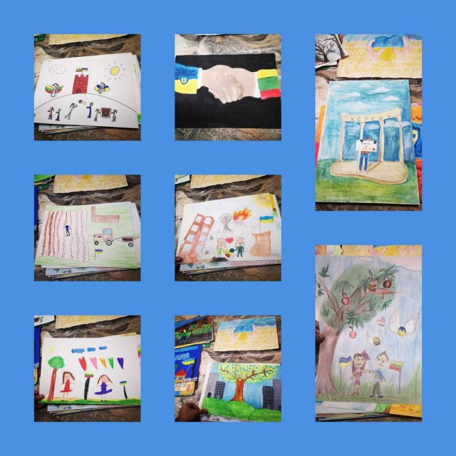До Дня конституції України малюнки юних литовських художників відправлять до Херсона. Їх можна буде побачити в гуманітарних центрах, бомбосховищах та лікарнях міста.