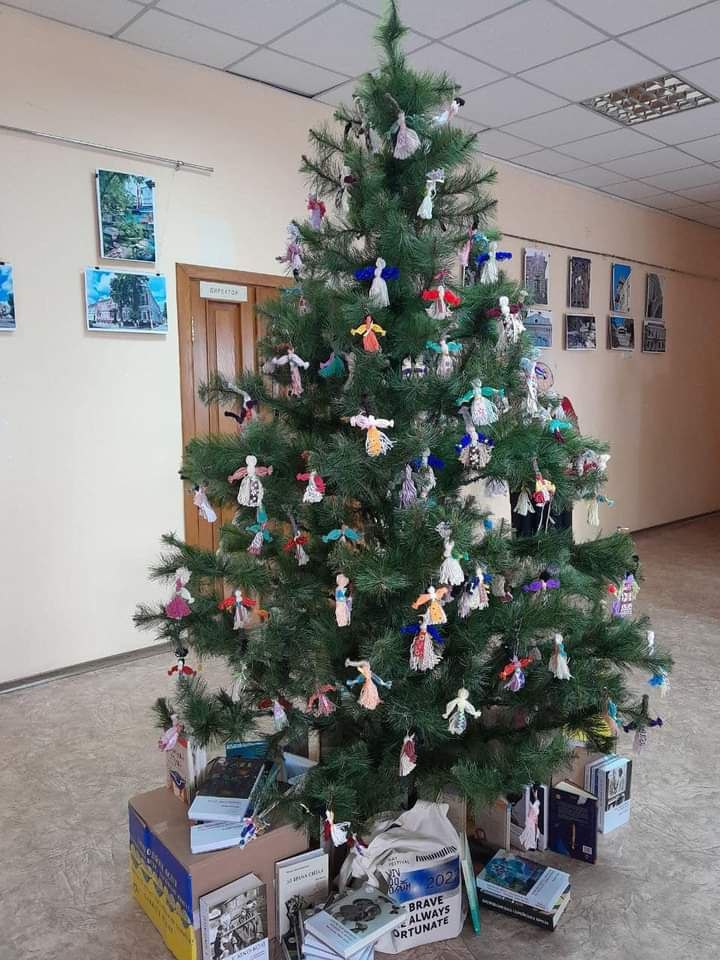 Напередодні Нового року в бібліотеці імені Лесі Українки Херсонської централізованої бібліотечної системи прикрасили ялинку мотанками-оберегами, які передала Херсону майстриня з Тернополя Тамара Василівна Пістун. Жінці – 83 роки. Вона відома в Україні своїми чудовими роботами. Перші ляльки пані Тамара виготовила з ниток нашого ХБК. Херсону вона передала 350 іграшок.Це була єдина в Україні ялинка, прикрашена ляльками-мотанками. Фото зі сторінки Центральної бібліотечної системи в соцмережі
