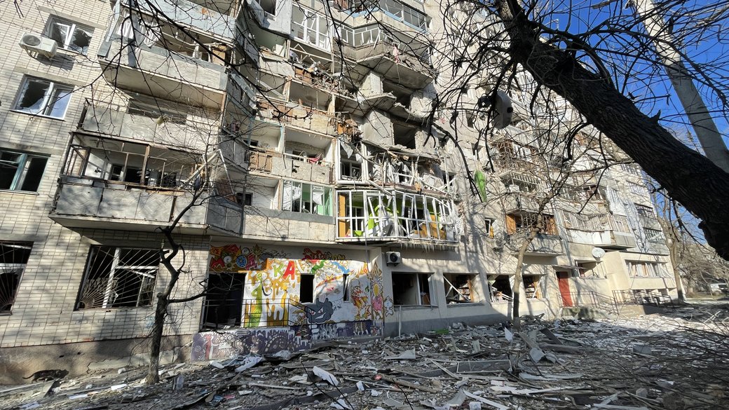 Одна з пошкоджених бібліотек знаходилася на першому поверсі багатоповерхівки в мікрорайоні Житлоселище. Херсон, 20 грудня 2022 р. Фото: Суспільне Херсон