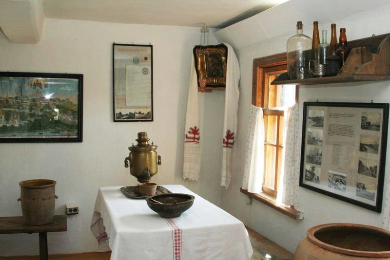 Типово українська ознака інтер’єру – ікона з рушником. У цій хаті Крамський жив до 16 років, потім три роки мандрів Україною з фотографом, в якого працював ретушером. І – Петербург, де він стає студентом Імператорської академії мистецтв. Художньої академії на території України не було, тож єдиний шлях до кар’єри художника лежав через Академію.