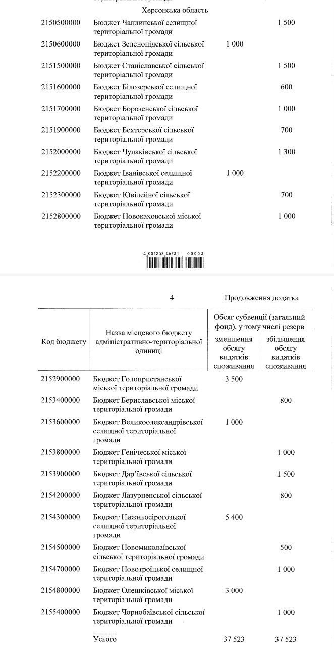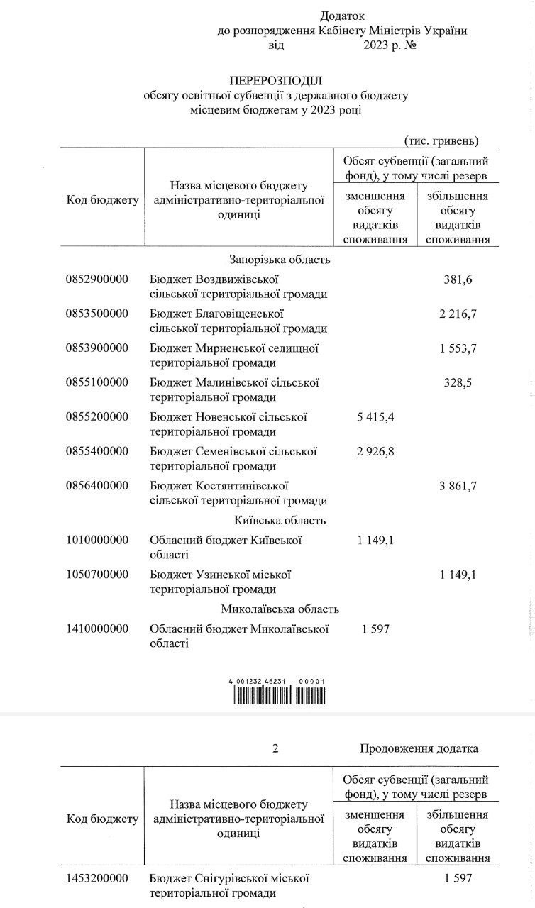 Сьогодні, 28 листопада Кабінет Міністрів ухвалив рішення "Про перерозподіл обсягу освітньої субвенції з державного бюджету місцевим бюджетам у 2023 році", яке визначає нові механізми фінансування у сфері освіти для низки регіонів України. У перелік ввійшли Миколаївська та Херсонська області.Відповідний документ оприлюднили на сайті Кабміну. Таким чином освітню субвенцію обсягом 37,5 мільйона гривень перерозподілять між місцевими бюджетами семи областей України: Миколаївською, Херсонською, Запорізькою, Київською, Полтавською, Сумською, Харківською.