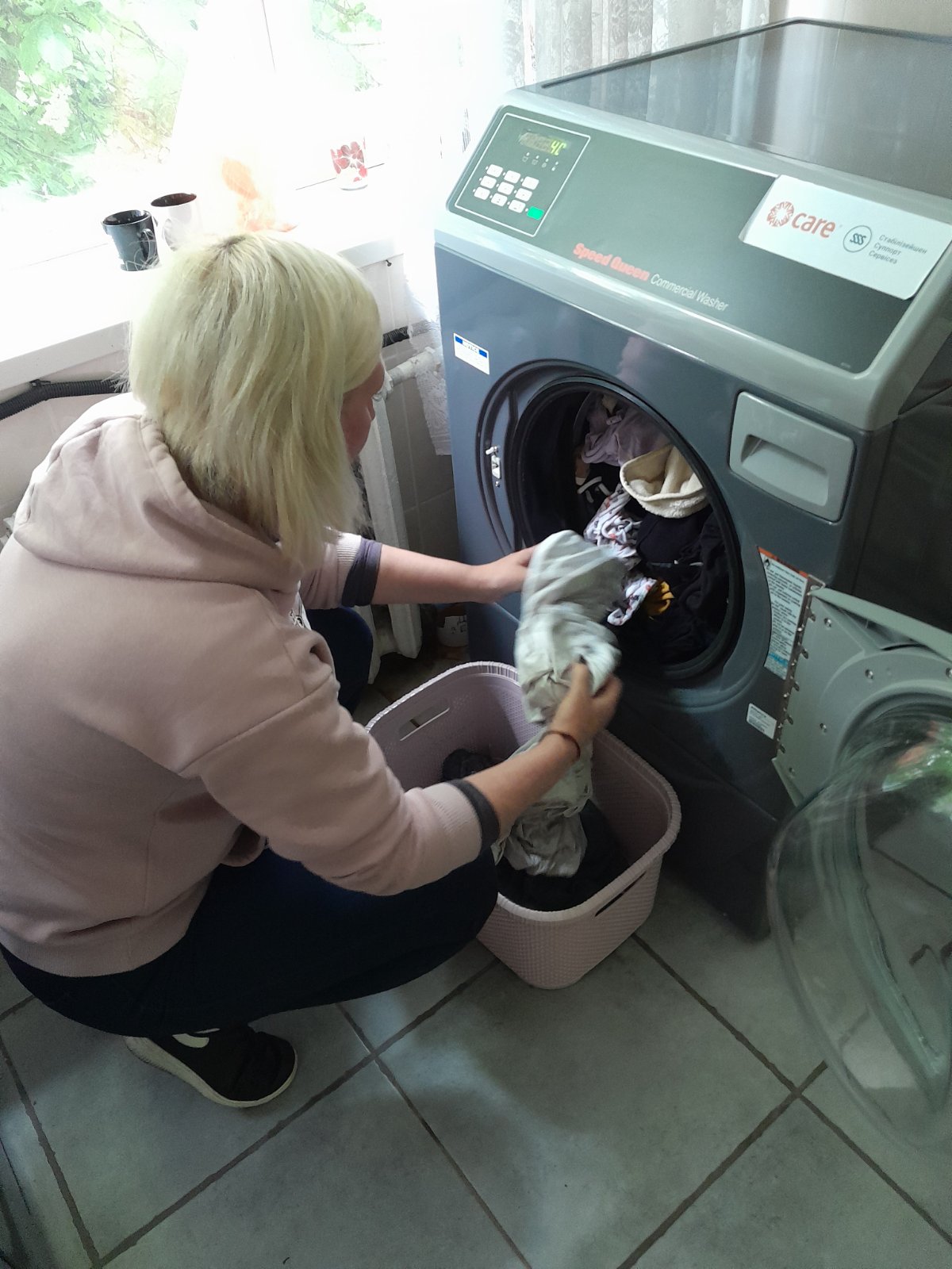 Наталія підкреслює позитивні аспекти оплачуваних державою суспільно-корисних робіт:Ми частково ліквідуємо безробіття, і людям не потрібно добиратися до Херсона на роботу – вони працюють за місцем проживання. Це зручно, оскільки немає витрат на дорогу. Ми не лише забезпечуємо людей роботою, але й отримуємо відрахування від їхньої заробітної плати до нашого бюджетуСуспільно-корисні працівники також залучені до роботи чотирьох соціальних пралень, розташованих у Дар’ївці, Федорівці, Інгульці та Лиманцях. Вони ведуть облік мийних засобів, приймають білизну, завантажують її в машини, контролюють процес прання та сушіння, а потім видають власникам випране. Наталія Гридіна пояснює, що такі спеціально навчені працівники необхідні в пральнях, щоб дороге обладнання використовувалося правильно і слугувало довго, не виходячи з ладу за короткий термін.