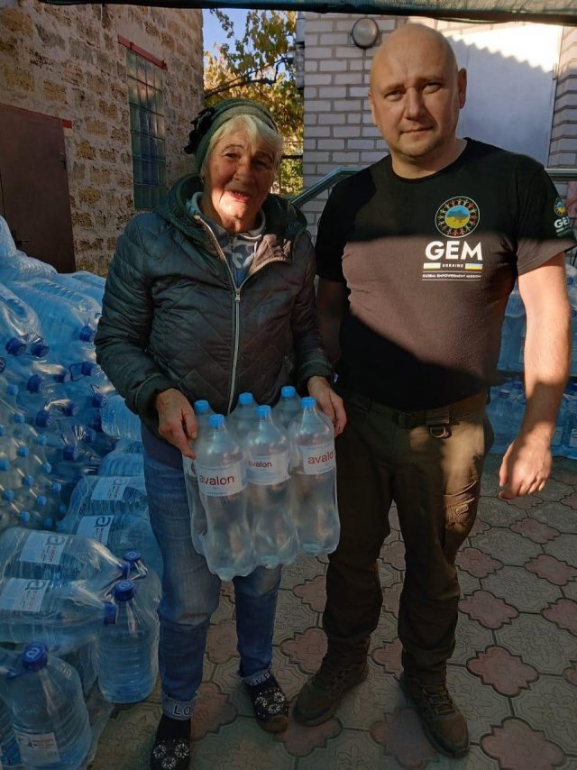 Global Empowerment Mission Ukraine у партнерстві з Howard G. Buffett Foundation доставляє мешканцям регіону, які внаслідок підриву Каховської ГЕС та постійних обстрілів відчувають гостру потребу чистої питної води.
