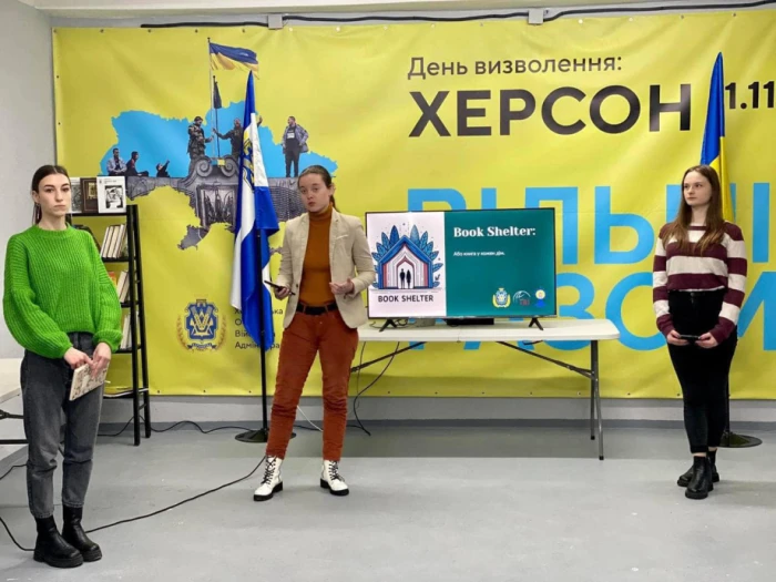 На початку 2024 року студенти започаткували в Херсоні проєкт Book Shelter, розмістивши в укриттях стелажі з книгами українською та англійською мовами.Розпочинали з мікрорайону Острів, який найчастіше обстрілюють російські війська, розташовані всього за кілька кілометрів – на тимчасово окупованому лівому березі Херсонщини. Тепер команда проєкту обладнала книжковими полицями 26 бомбосховищ та працює над створенням молодіжного центру.